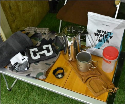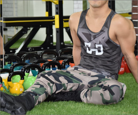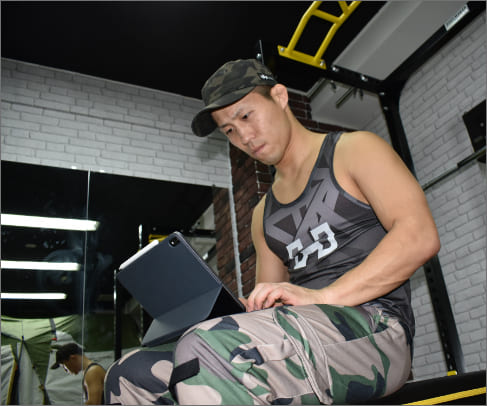 トレーニング時はミリタリーウェアで、ちょっとした非日常を。ジム内でトレーニング風景の撮影も可能。インスタやTwitterなど、SNSでも映えること間違いなし。